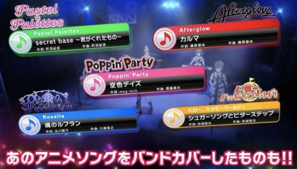 ゲーム内でプレイできるカバー曲を一覧にしました。