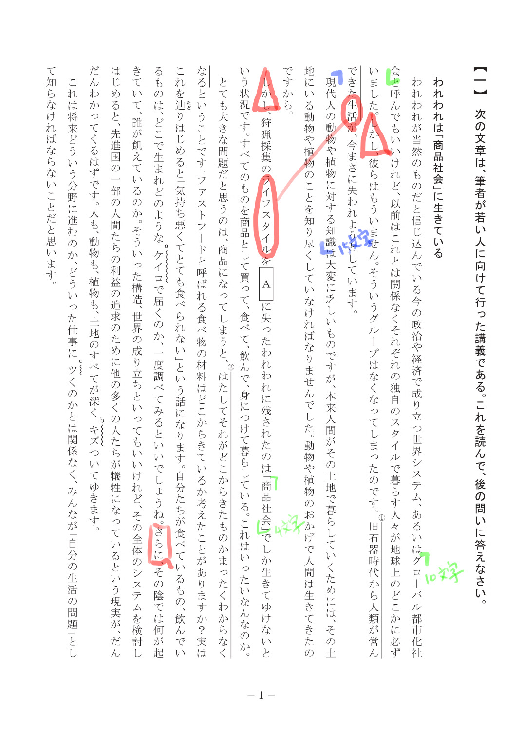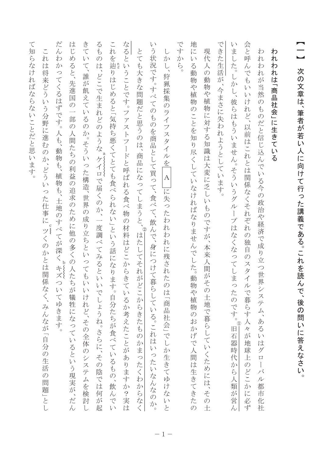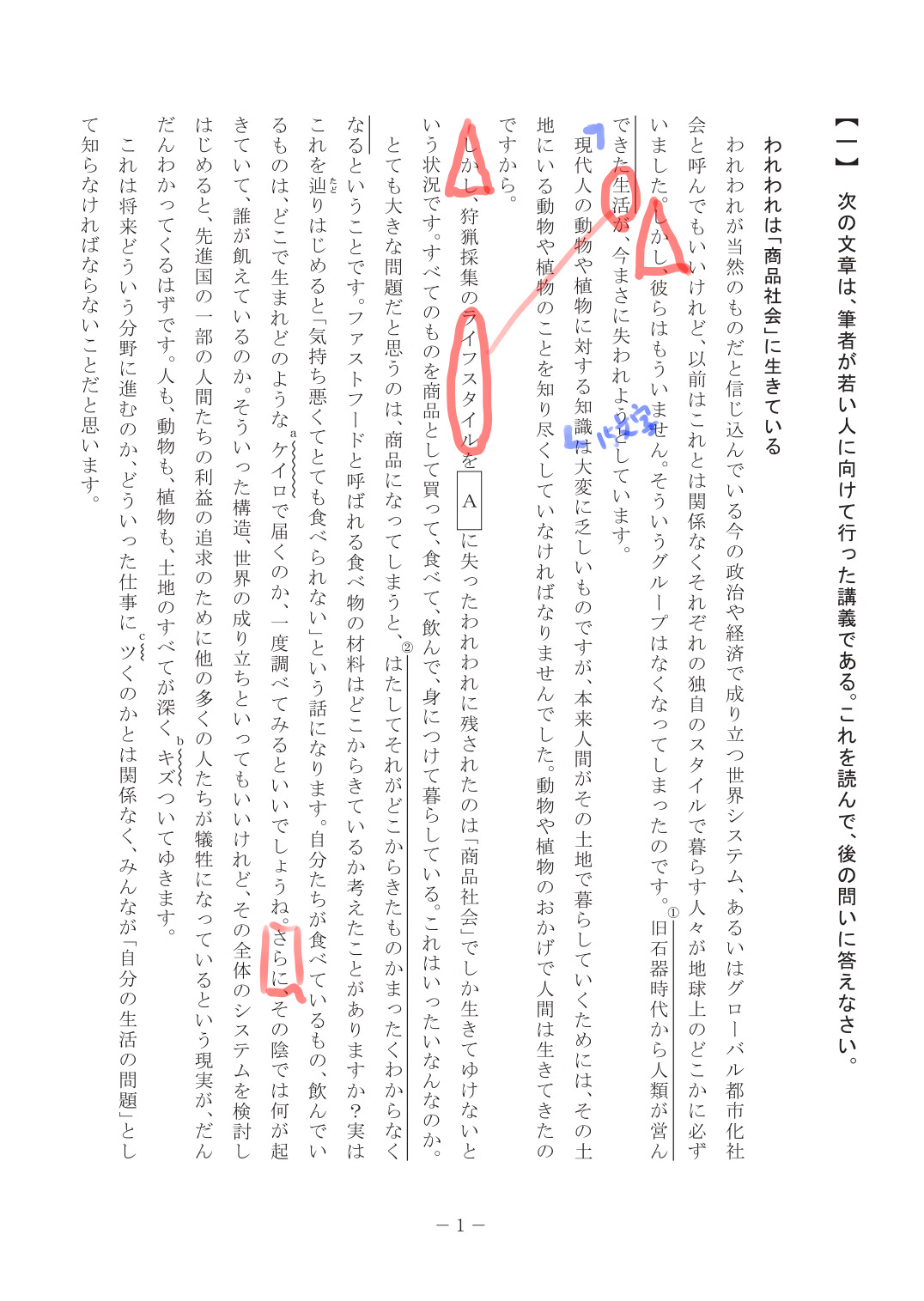 - 「(2)このような社会の陰では、」の”このような社会”は”グローバル都市化社会”であること