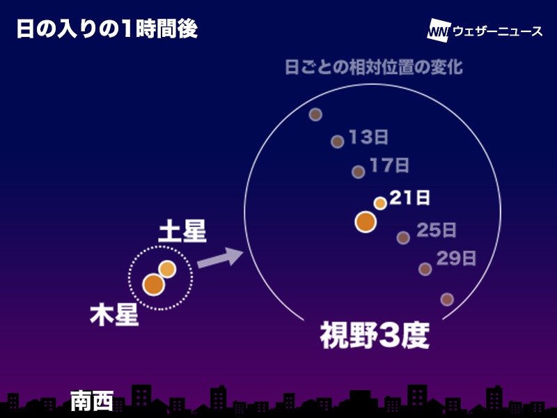 木星と土星が397年ぶりの「超大接近」 きょう日没後、肉眼で観察可能