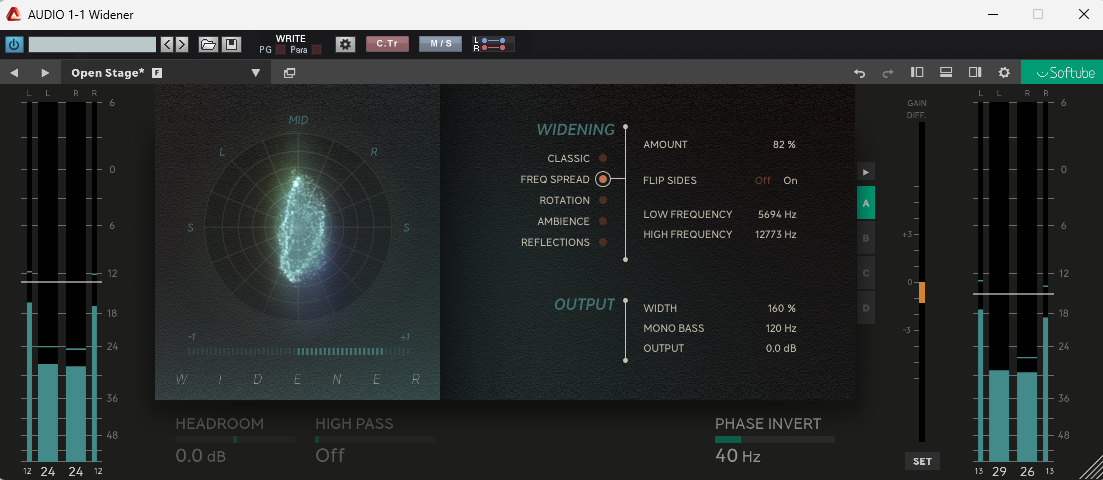 5つの異なる アルゴリズム による ステレオワイド を提供する Softube『Widener』