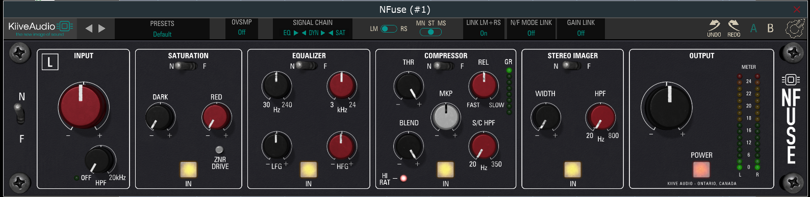 N: ボトムエンドに極端な重みを加える「ダーク」と、トップエンドの倍音を強調する「レッド」のサチュレーションキャラクターを特徴とする、丸くて厚いサチュレーションです。