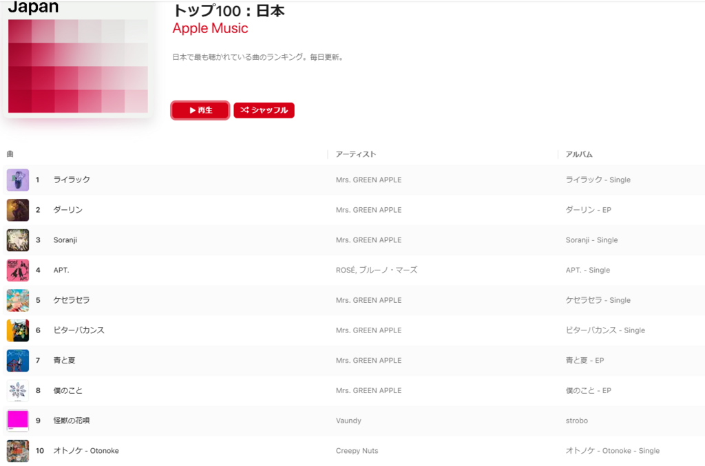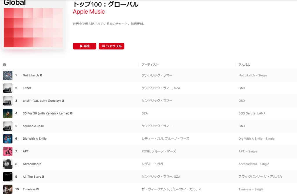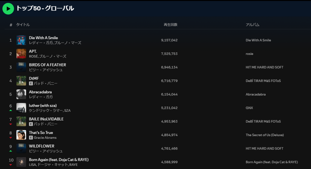 Disclosure: このページの一部のリンクには広告が含まれています。これらをクリックして購入することで、直接ひろぽんをサポートすることができます。ありがとうございます。 ミュージックランキング 2025/2/11 DTM・音楽 X Facebook0 2025.02.11 目次 Apple MusicSpotifyYouTube musicBillboard Apple Music グローバル 日本 Spotify グローバル 日本 YouTube music グローバル 日本 Billboard US 日本 Japanese Songs in the World Animation VOCALOID 関連記事 ミュージックランキング 2025/9/8 ミュージックランキング 2025/9/29 ミュージックランキング 2025/9/22