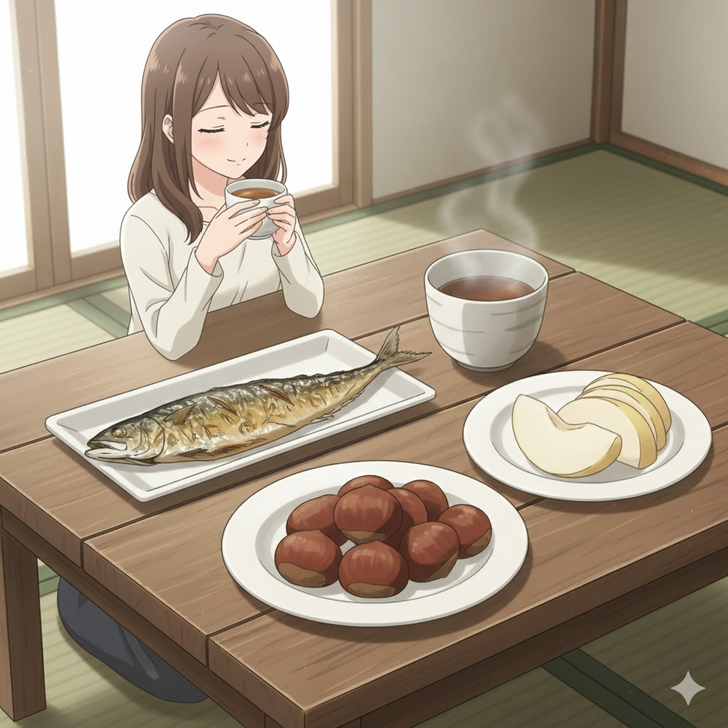 まずは秋刀魚。脂がのった季節の味は格別ですが、私はなぜか背中の部分しか食べられません。それでも焼ける香りを感じるだけで秋を実感します。次に栗。最近は一年中見かける甘栗ばかりですが、ほくほくした栗ご飯や渋皮煮を思い出すと、やはり秋の風情を感じます。そして何より梨。みずみずしくて、しゃりっとした食感がたまりません。夏はメロン、秋は梨と決めているくらい好きな果物です。