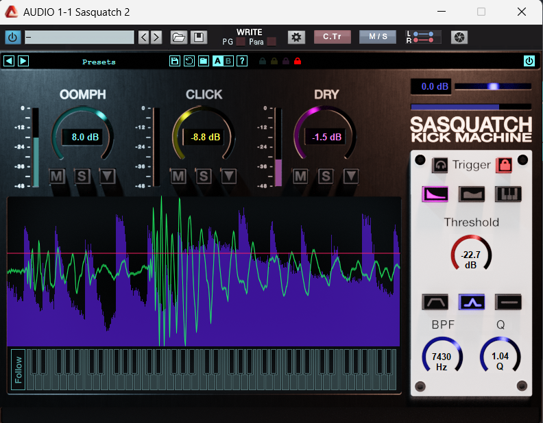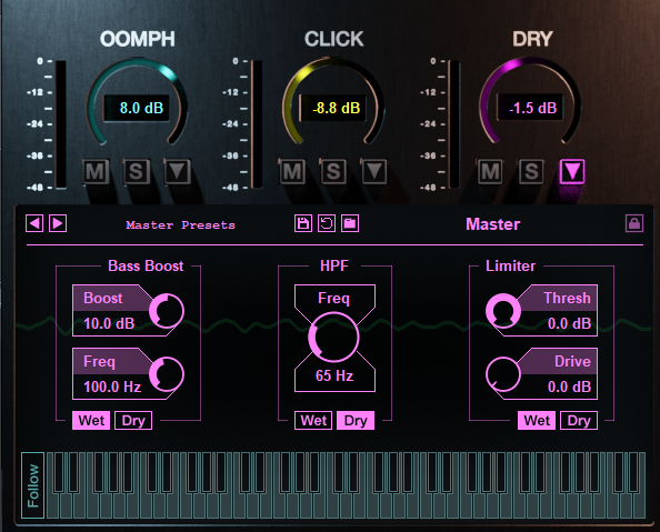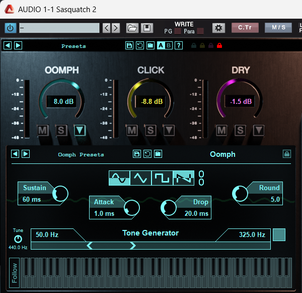 Oomphは新しい低周波を生成し、元キックのエンベロープに追従します。
